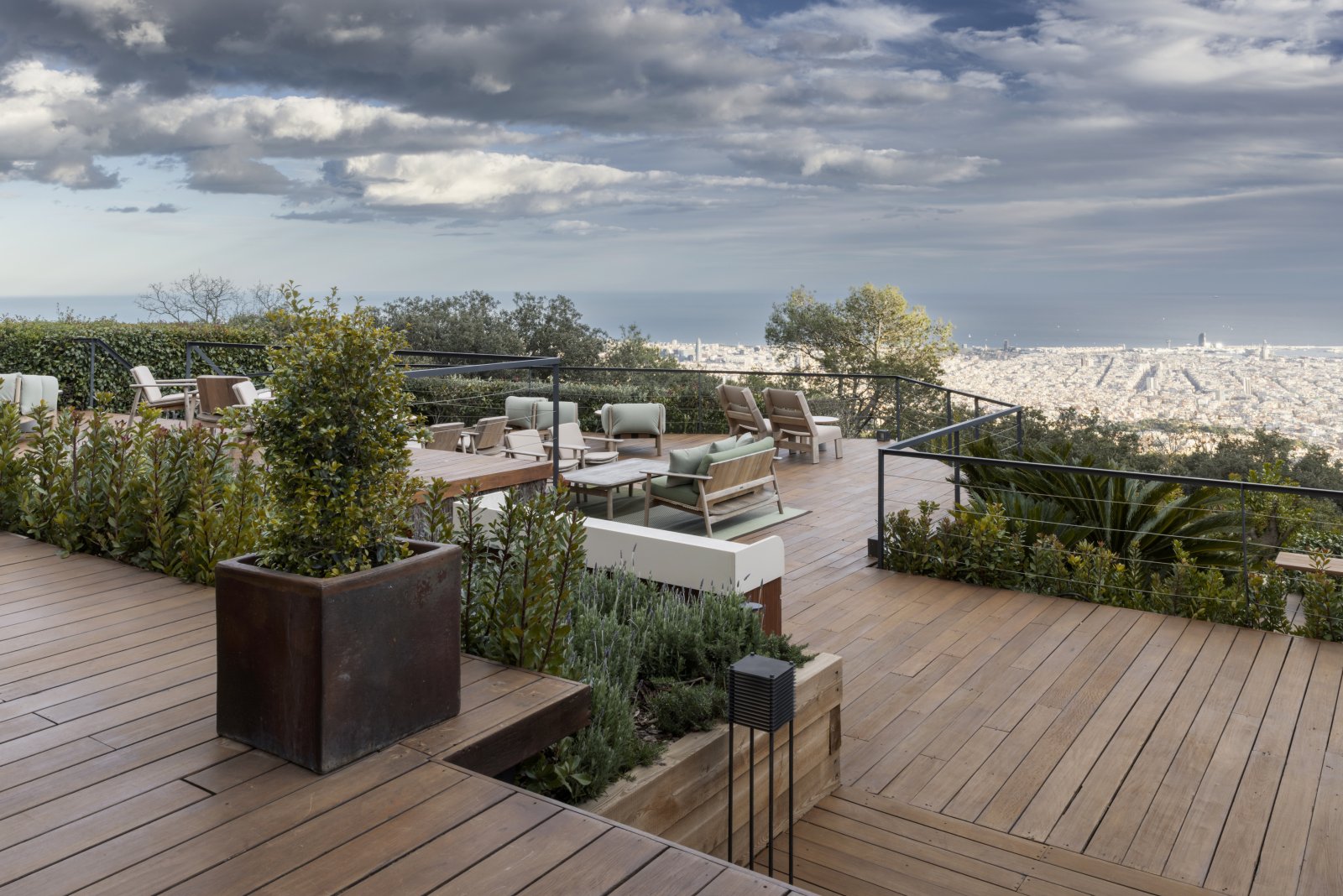 Externally, the intervention revitalises terraces and gardens, integrating them into a contemporary proposal in harmony with Barcelona’s landscape. The terraces have been upgraded and the outdoor bar enhanced as a new meeting point, surrounded by native vegetation and furnished with Kettal pieces, as well as Iaso umbrellas and pergolas.
