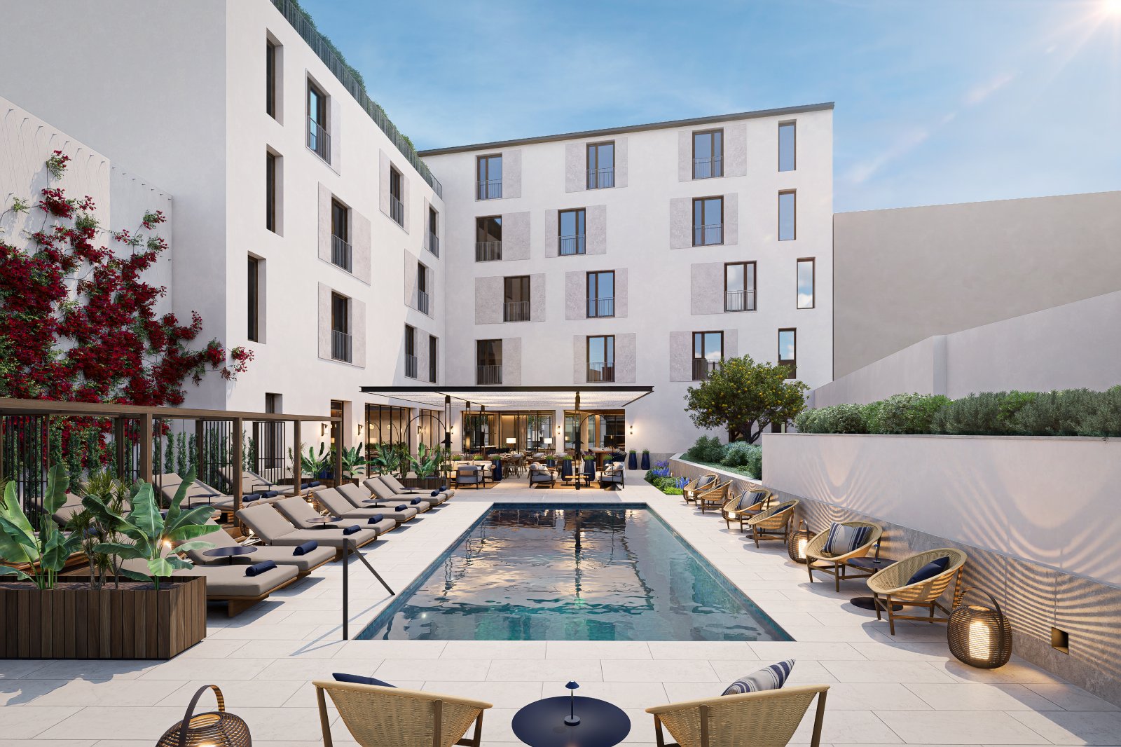 Se trata de un hotel boutique urbano de nueva planta en Palma de Mallorca, con aproximadamente 4.000 m² construidos y 48 habitaciones. El edificio se articula en torno a un amplio patio de manzana, que aporta luz natural, ventilación y un ambiente tranquilo en pleno tejido urbano, reforzando la calidad espacial del conjunto.