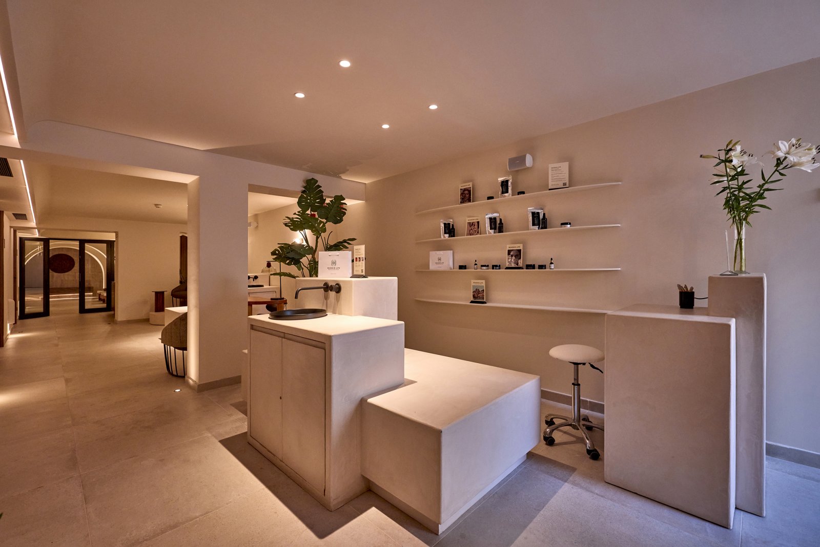 La decoración completa la propuesta con detalles cuidadosamente seleccionados que refuerzan la identidad mediterránea y aportan un toque de exclusividad y confort. El proyecto apuesta por un mobiliario de madera realizado con materiales nobles y acabados naturales, subrayando la importancia de la calidad y la durabilidad. La selección incluye piezas diseñadas y producidas tanto por proveedores locales como internacionales, combinando tradición artesanal y diseño contemporáneo.